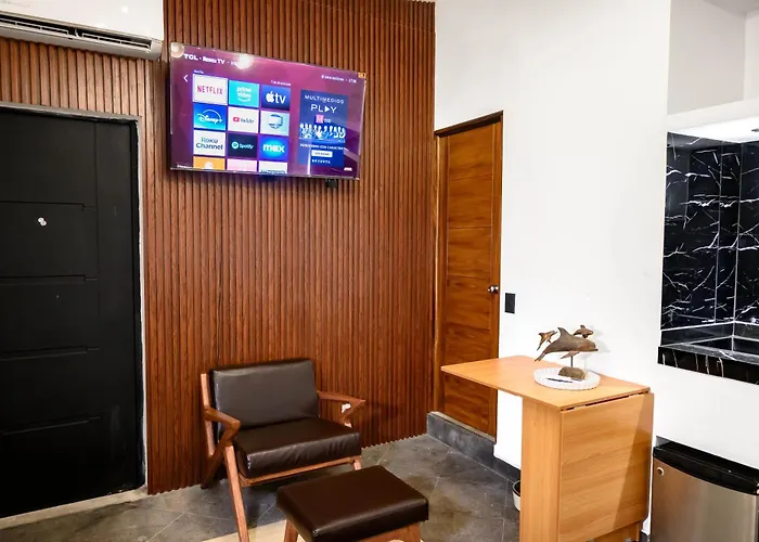 En este alojamiento se incluye una cocina completa con horno de microondas y nevera. El restaurante Pipi's, situado a unos minutos a pie de este establecimiento, sirve comida mexicana. La estación de autobuses Juarez y Calle Abasolo se encuentra a unos 400 metros. Además, los huéspedes pueden disfrutar de la comodidad de centro de fitness, que promueve un estilo de vida saludable durante su estancia.